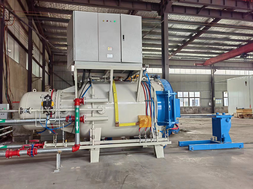 爐體和爐蓋為雙壁水冷結(jié)構(gòu),內(nèi)壁、外壁采用8mm碳素鋼制造,爐門采用鉸鏈式側(cè)向旋開結(jié)構(gòu),后部為標準橢圓封頭焊接電機安裝法蘭,安裝內(nèi)循環(huán)氣冷系統(tǒng)。